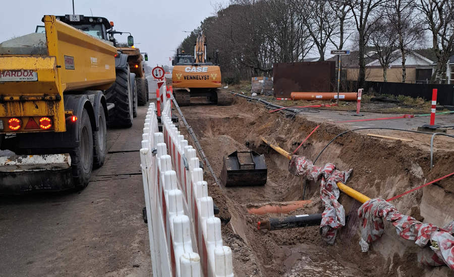 Foruden fjernvarmen omfatter anlægsarbejderne etablering af ny regnvandstrykledning i Nordsøvej.
